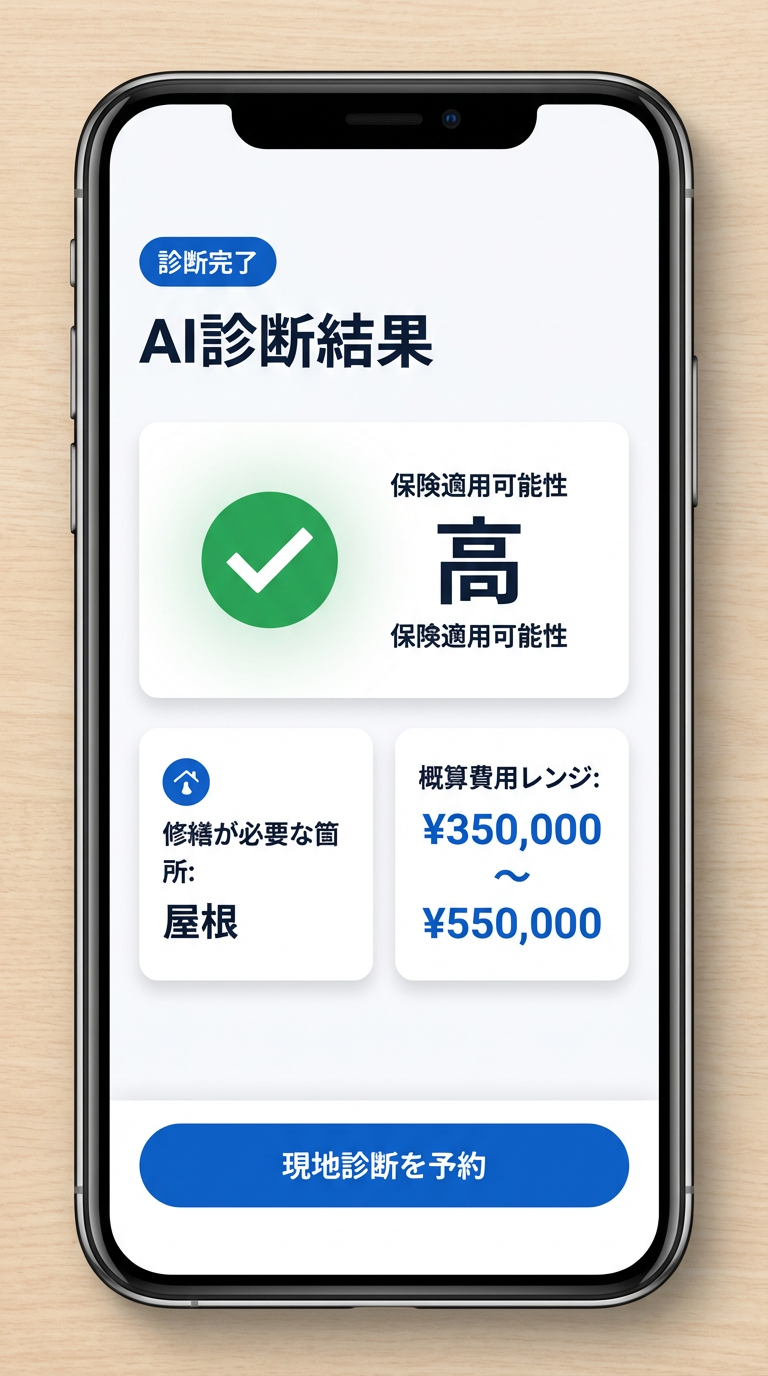 “他社では屋根全体の葺き替えを提案されましたが、AI診断で部分修繕で済むと分かり、火災保険で全額カバーできました。”