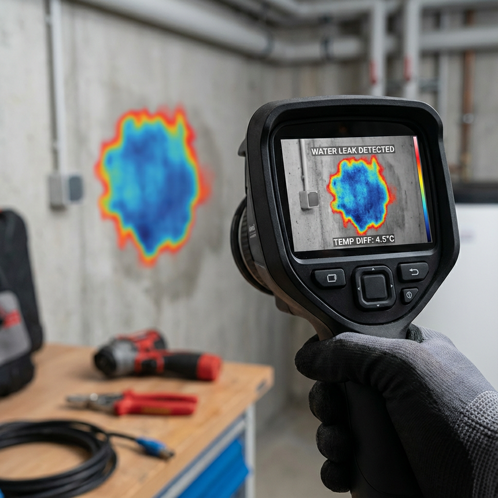 温度差で水の侵入経路を可視化。壁を壊さずに原因を特定します。